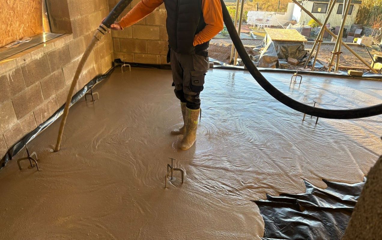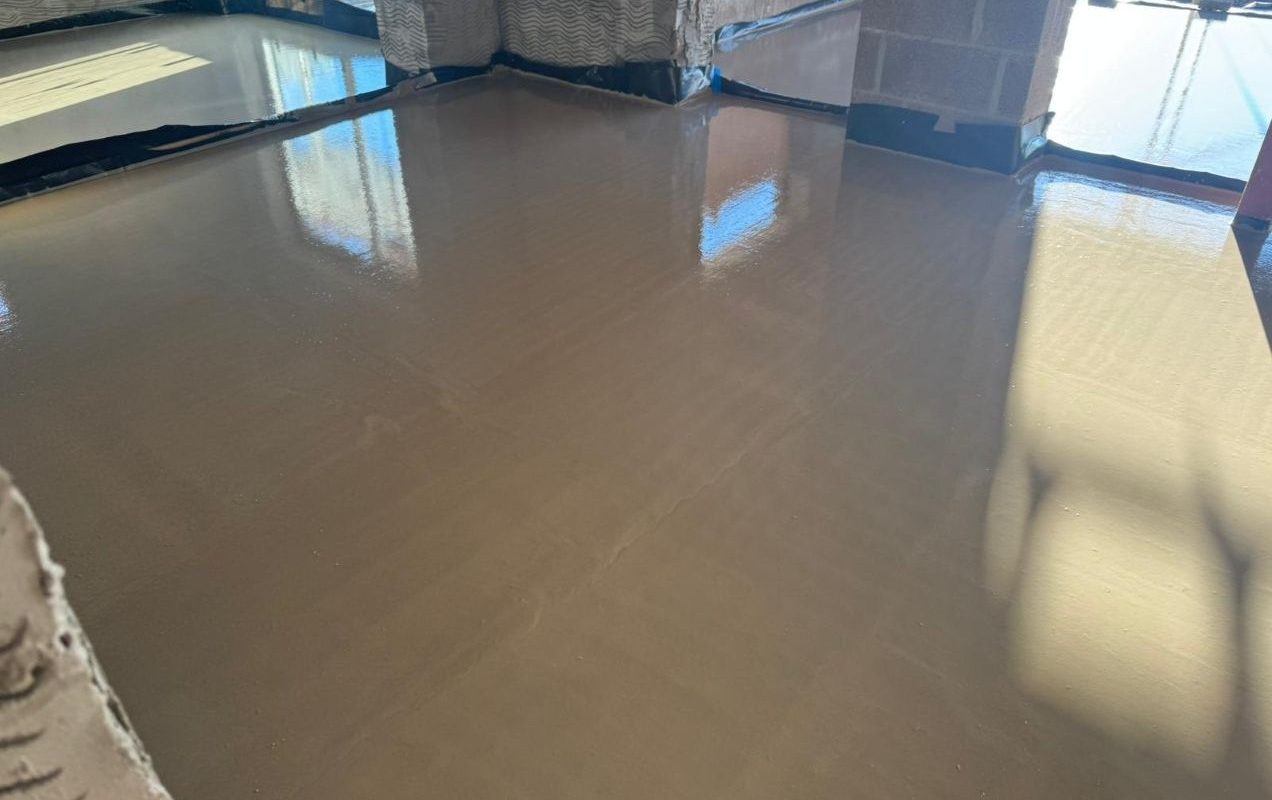 With everything perfectly prepared and levels checked, the team executed a precise installation. We efficiently poured 6m³ of Tarmac’s Screed C Cure into a full refurbishment project. This high-quality cement-based liquid screed is renowned for its durability and excellent conductivity, making it the ideal floor screeding solution for modern builds and renovations.
