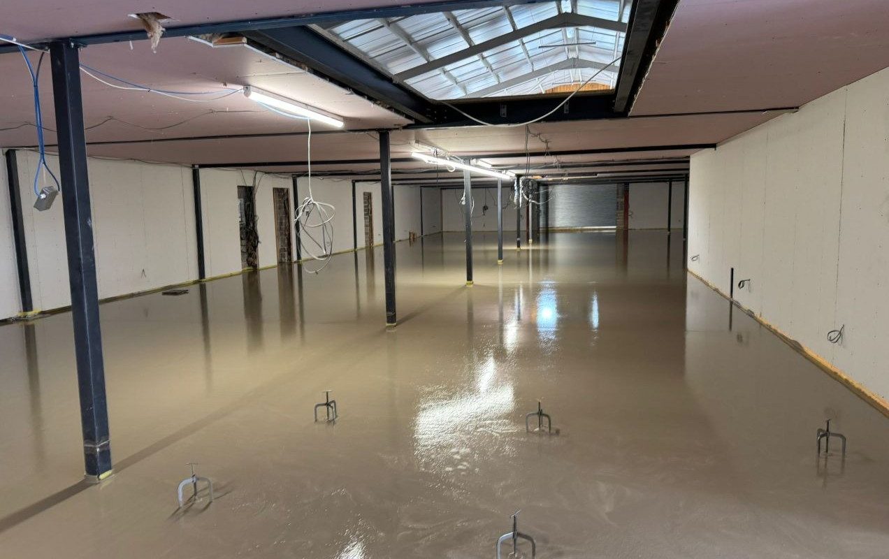 And finally, the big pour! Today we poured 35m³ of screed using Tarmac’s innovative new thin product—resulting in a perfectly flat floor.