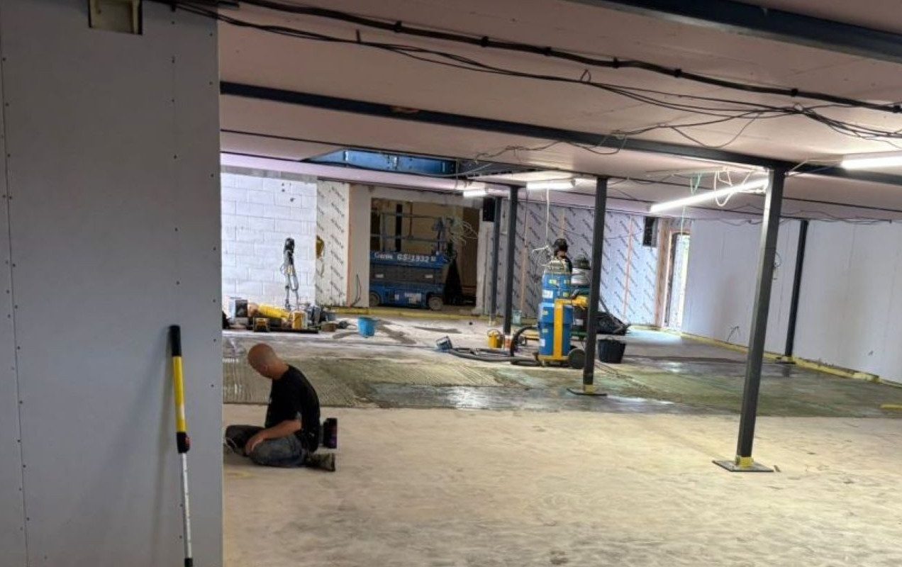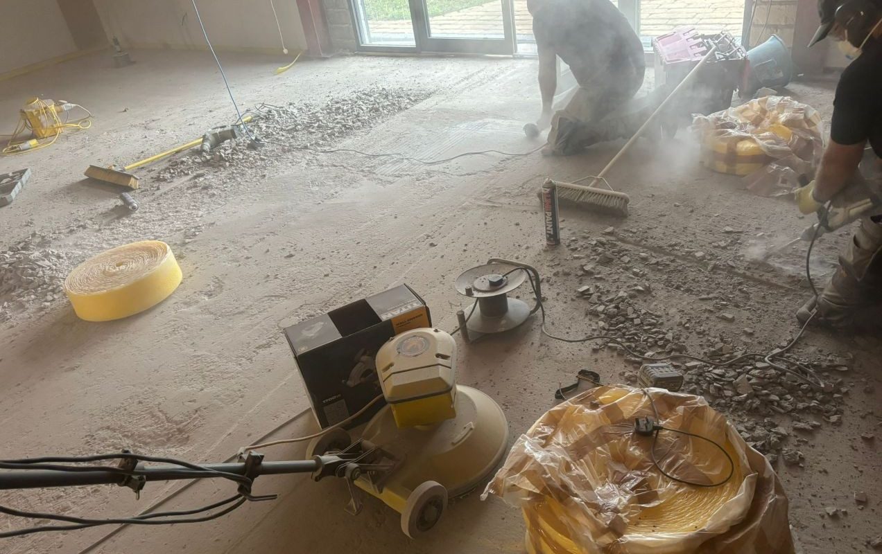 Kicking off on Saturday, we’ve worked tirelessly ever since to deliver a high-quality finish. The first hurdle? Tackling high spots in the original concrete slab—no mean feat, we can tell you! Once that was conquered, we moved on to scabbing almost 500m² of the existing slab. With the surface prepped, it was time to break out the hoovers and clean the area to within an inch of its life.